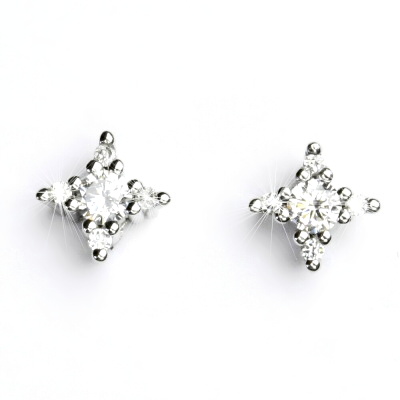 Náušnice z bílého zlata jsou zdobeny čirými zirkony o průměru 1,75 a 3,90 mm. Materiál náušnic je zlato 585/1000. Rozměr zdobné části náušnice je 10x10 mm. Náušnice mají zapínání na šroubek a jsou rhodiované. Orientační váha náušnic je 2,60 g.
