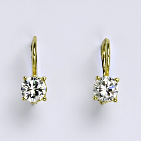 Zlaté náušnice na klasické patentové zapínání zdobí čirý zirkon