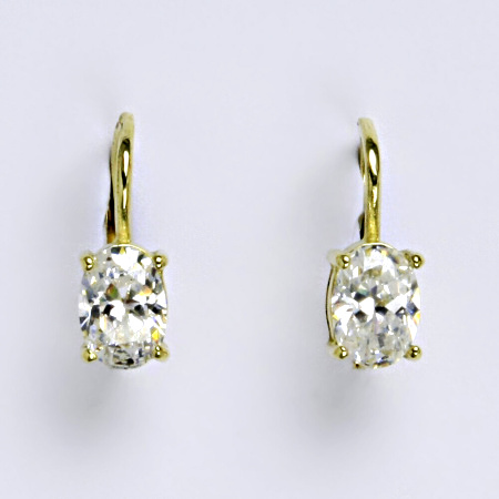 Zlaté náušnice jsou zdobeny syntetickým zirkonem o rozměru 7 x 5 mm
