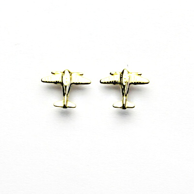 Zlaté náušnice s motivem letadel, žluté zlato 585/1000. Letadélka měří 11 mm na šířku a 9 mm na výšku, orientační hmotnost šperku je 0,96 g. Náušnice disponují zapínáním na šroubek.