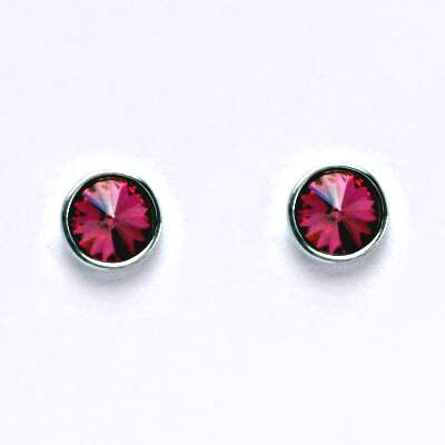 Zlaté náušnice na šroubek se Swarovski krystalem fuchsia, bílé zlato, NŠ 1336
