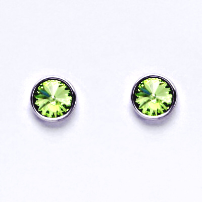 Zlaté náušnice na šroubek se Swarovski krystalem peridot, bílé zlato, NŠ 1336