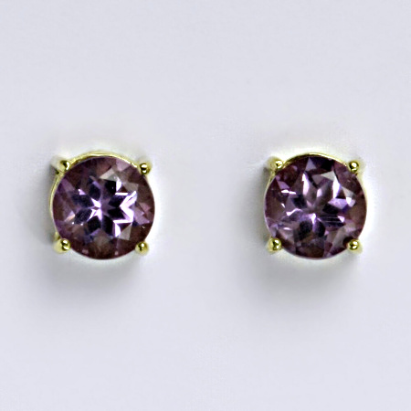 Zlaté náušnice,přírodní ametyst tmavý, žluté i bílé zlato - NŠ 1252