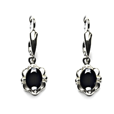Zlaté náušnice s přírodním kamenem černý spinel velikosti 8x6 mm. Náušnice se zapínají na klasický patent, jejich celková výška je 30 mm, rozměry zdobné části 11x5 mm. Orientační hmotnost šperku 3,56 g. Náušnice jsou vyhotoveny z bílého zlata ryzosti 585/1000.