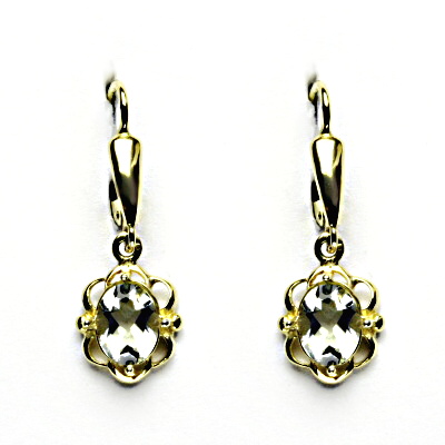 Zlaté náušnice, přírodní green ametyst, žluté zlato, NK 1140/20