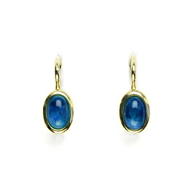 Zlaté náušnice, přírodní safír 6x4, žluté zlato, NK 1353