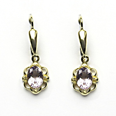 Zlaté náušnice, přírodní světlý ametyst, žluté zlato, NK 1140/20