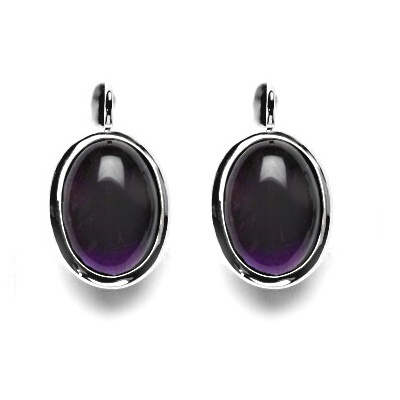 Zlaté náušnice, přírodní tmavý ametyst, bílé zlato - NK 1454