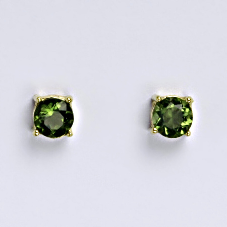 Zlaté náušnice jsou zdobeny přírodním kamenem vltavínem