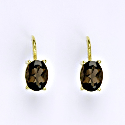 Zlaté náušnice s přírodním kamenem záhnědou o rozměru 8 x 6 mm.