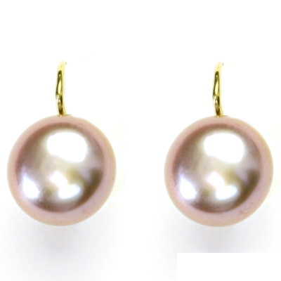 Zlaté náušnice, růžová přírodní říční perla,12 mm, žluté i bílé zlato, NK 1299