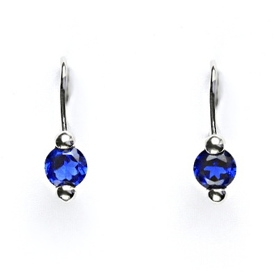 Zlaté náušnice se zirkony v barvě spinelu vsazenými do dvou dekorativních krapen. Zdobná část měří 8 mm na výšku a 4,75 mm na šířku, průměr syntetického kamene je 4,75 mm. Náušničky disponují zapínáním na klasický patent - celková výška 16 mm. Šperk je vyhotoven z bílého zlata ryzosti 585/1000, orientační hmotnost 2,15 g.