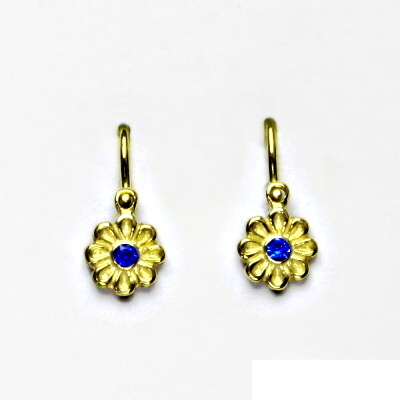 Dětské zlaté náušnice kytičky, žluté zlato, zirkon spinel - VE 175