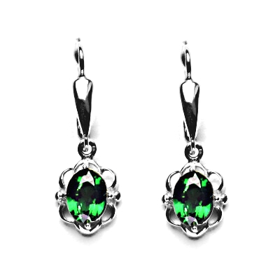 Zlaté náušnice osazené zirkony emerald velikosti 8x6 mm. Náušnice se zapínají na klasický patent, jejich celková výška je 30 mm, rozměry zdobné části 11x5 mm. Orientační hmotnost šperku 3,56 g. Náušnice jsou vyhotoveny z bílého zlata ryzosti 585/1000.