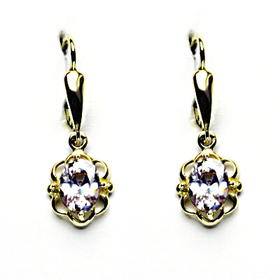 Zlaté náušnice, zirkon lavender, žluté zlato, NK 1140/20