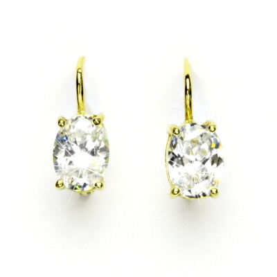 Zlaté náušnice s čirým zirkonem o rozměru 8 x 6 mm.