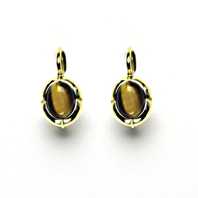 Zlaté náušnice, žluté zlato, přírodní tygří oko, NK 1374