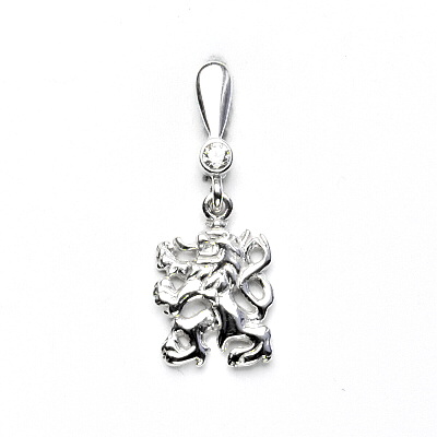 Zlatý přívěsek ve tvaru Českého lva - heraldika, s úchytem zdobeným 2 mm čirým zirkonem. Celková výška šperku je 26 mm, lev měří 12 x 10 mm. Přívěsek je vyhotoven z bílého zlata 585/1000, orientační hmotnost 1,86 g.