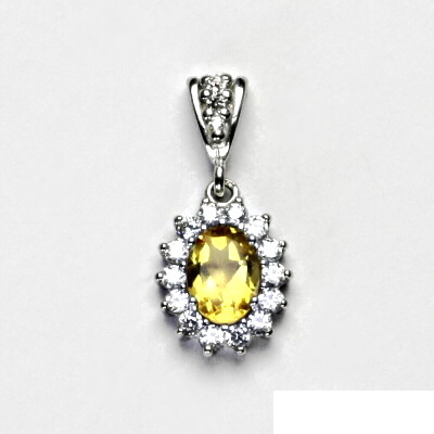 Přívěsek z bílého zlata je zdoben čirými zirkony a přírodním citrínem o rozměru 8x6 mm. Materiál je zlato 585/1000. Rozměr přívěsku je 24 mm včetně očka na výšku a 11 mm na šířku. Orientační váha přívěsku 2,10 g.