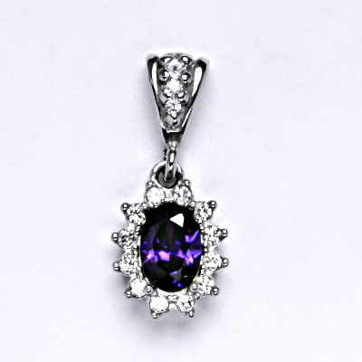 Zlatý přívěšek Kate, syntetický ametyst, čiré zirkony, bílé zlato P 1480