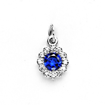 Zlatý přívěsek ve stylu populárního modelu Kate zdobí zirkon spinel o průměru 5,5 mm, po jehož obvodu jsou zasazeny čiré zirkony.
