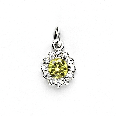 Zlatý přívěsek ve stylu populárního modelu Kate zdobí žlutý zirkon o průměru 5,5 mm, po jehož obvodu jsou zasazeny čiré zirkony.