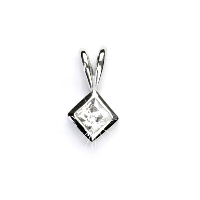 Přívěsek z bílého zlata s čirým zirkonem o rozměru 4 x 4 mm