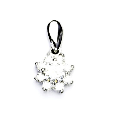 Přívěsek z bílého zlata s čirými zirkony - kytička. Materiál je zlato 585/1000. Orientační váha přívěsku je 1,59 g. Rozměr přívěsku je 18 mm včetně úchytu na výšku a 10 mm na šířku.Středový kámen 5,5 mm.