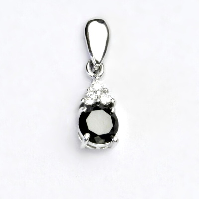 Přívěsek z bílého zlata zdobí čiré zirkony a zirkon černý o průměru 6 mm.