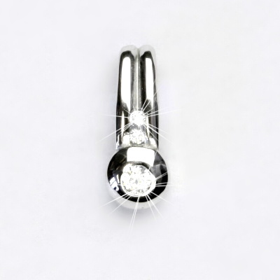 Přívěsek z bílého zlata s čirými zirkony. Materiál je zlato 585/1000. Orientační váha přívěsku je 1,58 g. Rozměr přívěsku je 17 mm včetně úchytu na výšku a 7 mm na šířku.