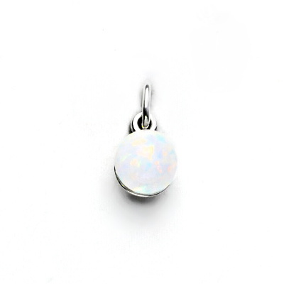 Zlatý přívěsek se syntetickým opálem bílé barvy. Průměr opálové kuličky je 6 mm, celková výška přívěsku 13 mm. Šperk je vyroben z bílého zlata 585/1000 (14 kt), orientační hmotnost 0,47 g.