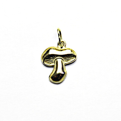 Zlatý přívěsek ve tvaru hříbku. Orientační hmotnost šperku je 1,72 g, rozměry jsou 19 mm včetně očka na výšku a 12 mm na šířku. Vyhotoveno ze žlutého zlata ryzosti 585/1000.