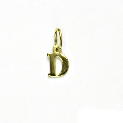 Přívěsek ze žlutého zlata - písmeno D. Materiál je zlato 585/1000. Rozměr přívěsku je 13 mm včetně očka a 5 mm na šířku. Orientační váha přívěsku je 0,24 g.