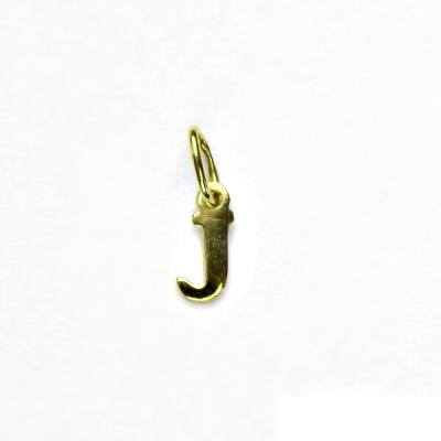 Přívěsek ze žlutého zlata - písmeno J. Materiál je zlato 585/1000. Rozměr přívěsku je 12 mm včetně očka a 4 mm na šířku. Orientační váha přívěsku je 0,20 g.