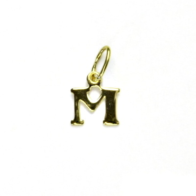 Přívěsek ze žlutého zlata - písmeno M. Materiál je zlato 585/1000. Rozměr přívěsku je 12 mm včetně očka a 8 mm na šířku. Orientační váha přívěsku je 0,30 g.