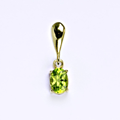 Zlatý přívěsek oválek zdobí přírodní kámen olivín
