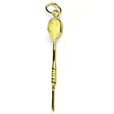 Přívěsek ze žlutého zlata ve tvaru šipky. Materiál je zlato 585/1000. Rozměr přívěsku je 36 mm včetně očka na výšku a 6 mm na šířku (nejširší část přívěsku). Orientační váha přívěsku je 0,89 g.