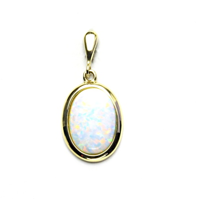Zlatý přívěsek, syntetický bílý opál, žluté zlato - P 1454/22