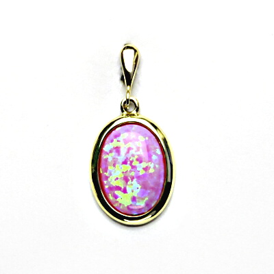 Zlatý přívěsek, syntetický růžový opál, žluté zlato - P 1454/22