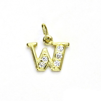 Zlatý přívěsek, žluté zlato, čiré zirkony, písmenko W, P 1106