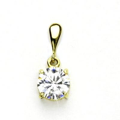 Přívěsek ze žlutého zlata s čirým zirkonem o průměru 8 mm. Materiál je zlato 585/1000. Orientační váha přívěsku je 1,97 g. Rozměr přívěsku je 19 mm včetně úchytu na výšku a 8 mm na šířku.