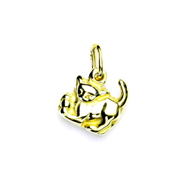 Přívěsek ze žlutého zlata - kočka. Materiál je zlato 585/1000. Orientační váha přívěsku je 1,72 g. Rozměr přívěsku je 13 mm včetně očka na výšku a 9 mm na šířku.