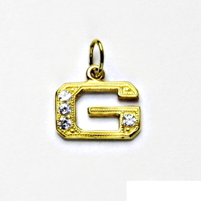 Zlatý přívěsek, žluté zlato, písmeno G, čiré zirkony, přívěšek, P 1106