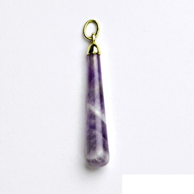 Zlatý přívěsek je zdoben přírodním ametystem. Materiál je zlato 585/1000. Orientační váha přívěsku je 2,1 g. Rozměr přívěsku je 38 mm včetně očka na výšku a 6 mm na šířku.
