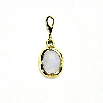 Zlatý přívěsek, žluté zlato, přírodní měsíční kámen - P 1374