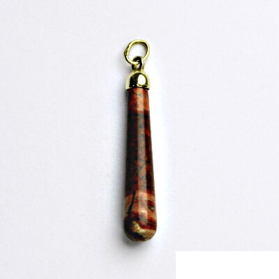 Zlatý přívěsek je zdoben přírodním jaspisem. Materiál je zlato 585/1000. Orientační váha přívěsku je 2,1 g. Rozměr přívěsku je 38 mm včetně očka na výšku a 6 mm na šířku.