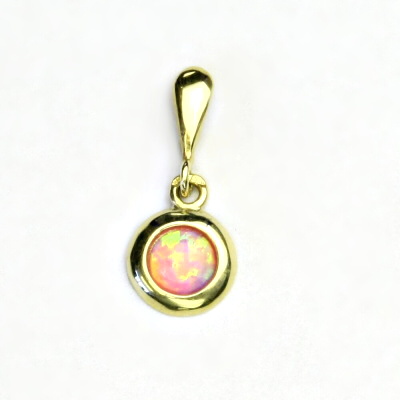 Přívěsek ze žlutého zlata zdobí syntetický opál o velikosti 5 mm