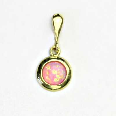 Zlatý přívěsek,žluté zlato, růžový syntetický opál, P 1471