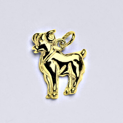 Zlatý přívěšek znamení zvěrokruhu beran. Celková výška přívěšku je 22 mm. Orientační váha přívěsku je 1,47 g. Materiál je 14 karátové žluté zlato 585/1000.