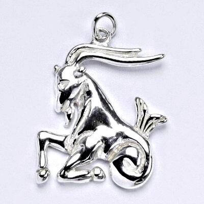 Zlatý přívěšek znamení zvěrokruhu kozoroh. Celková výška přívěšku je 27 mm. Orientační váha přívěsku je 2,82 g. Materiál je 14 karátové bílé zlato 585/1000.